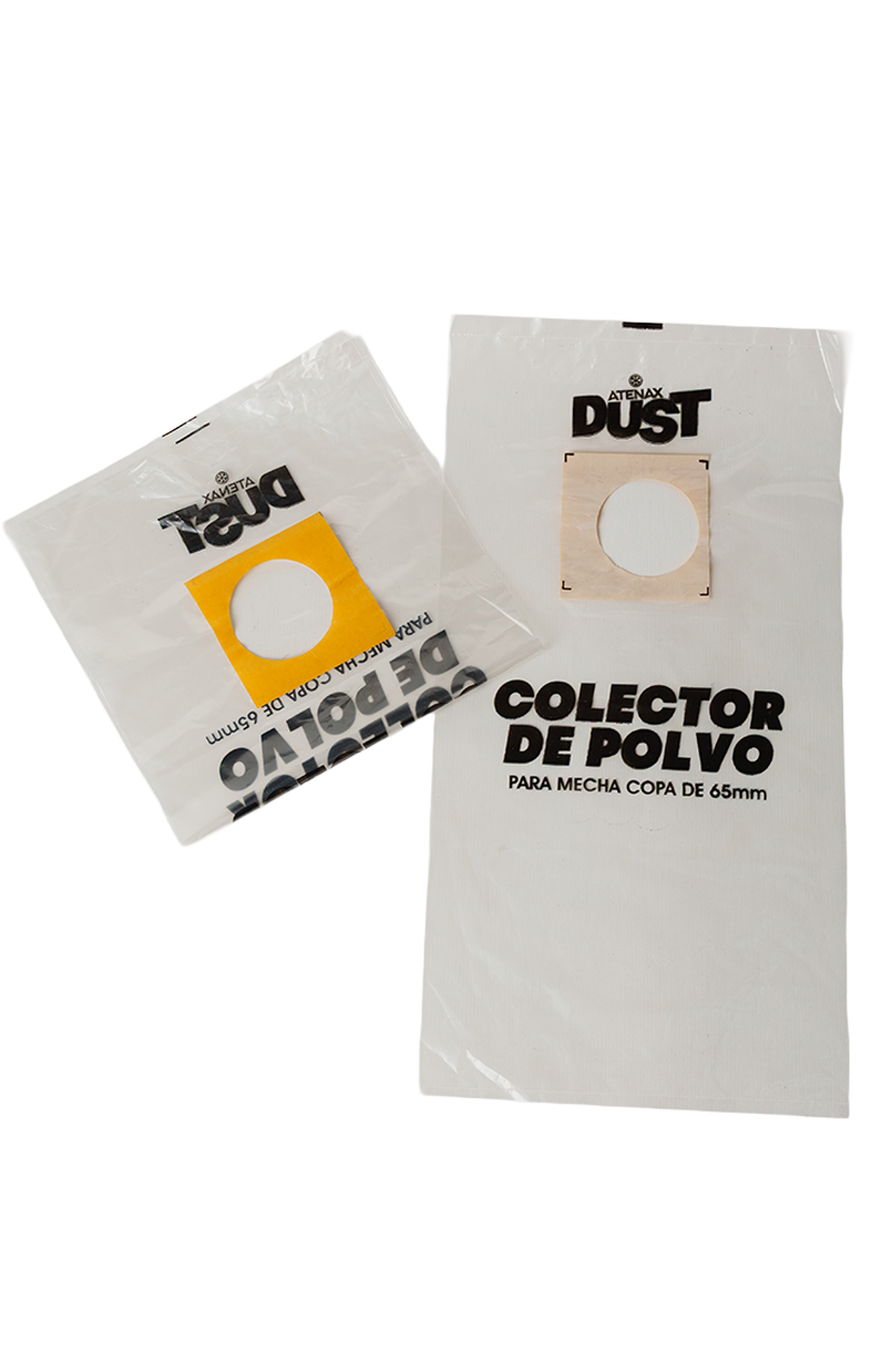 Bolsa recolectora de polvo diseñada para taladros con mechas copa de hasta 65 mm.